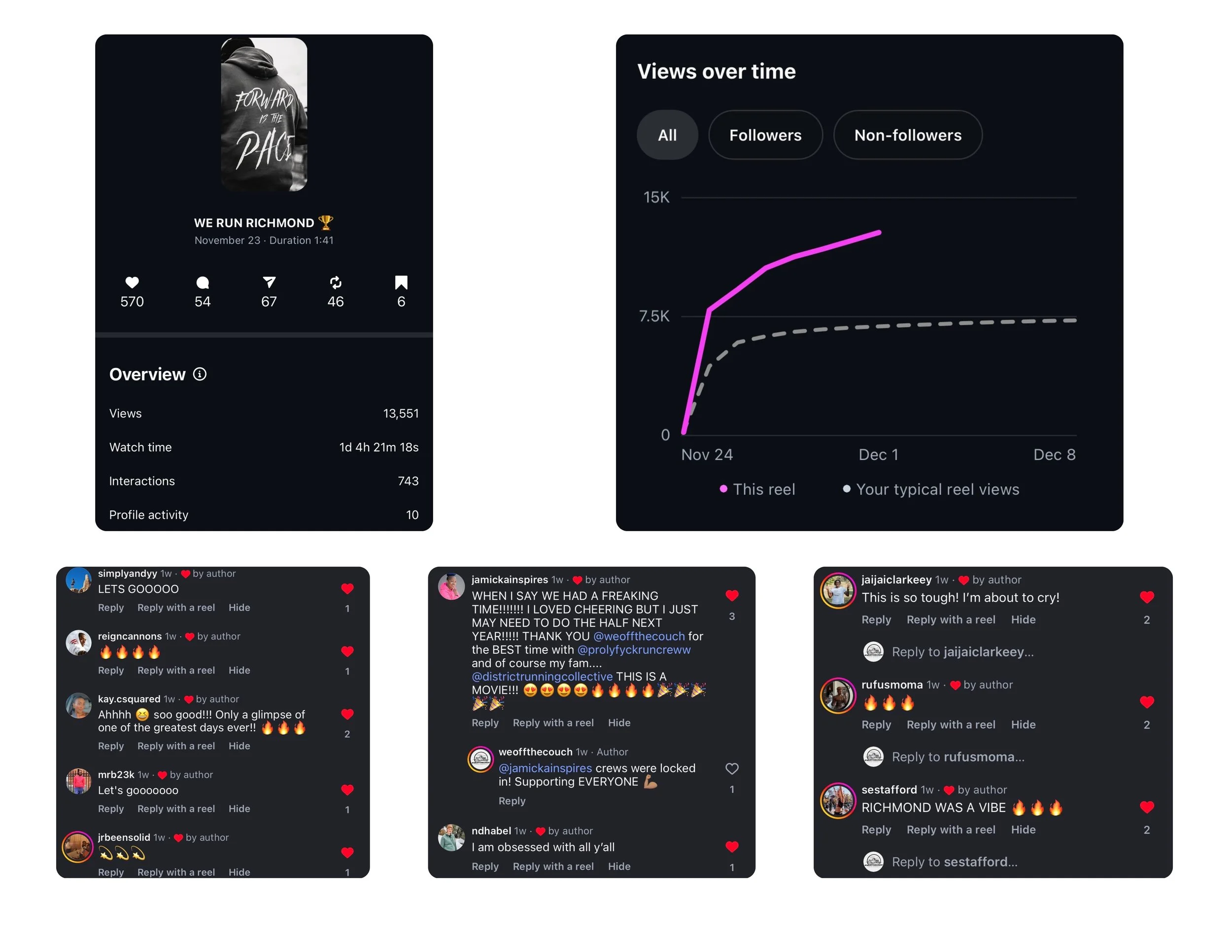 A collection of video and photos submitted by the WeOffTheCouch community, sharing (from their perspective) their experience during a weekly run. By including our community into this digital campaign, we’ve created an inclusive environment in which runners are helping drive success for the WeOffTheCouch social platforms.